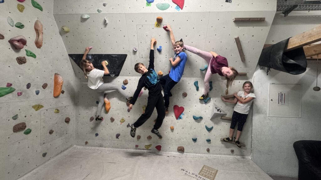Unser reguläres Training findet zweimal pro Woche statt – und das ganzjährig, auch während der Ferienzeiten. Doch damit nicht genug: Nahezu jedes Wochenende organisieren wir zusätzliche Unternehmungen, die für Abwechslung, Abenteuer und Gemeinschaft sorgen. Dazu zählen zum Beispiel Besuche in anderen Kletter- oder Boulderhallen, Ausflüge zu spannenden Klettersteigen oder auch Aktivitäten außerhalb des klassischen Klettersports – wie etwa ein Besuch in einem Virtual-Reality-Park oder anderen Freizeitattraktionen.