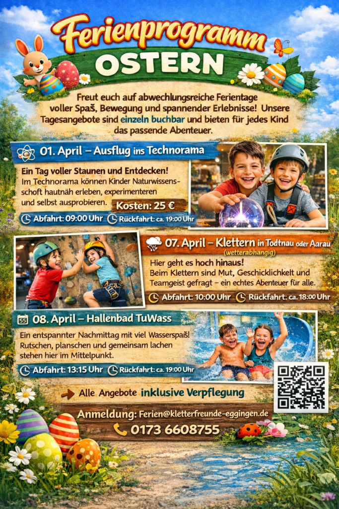 In den kommenden Osterferien-Ferien haben wir ein Ferienprogramm geplant.